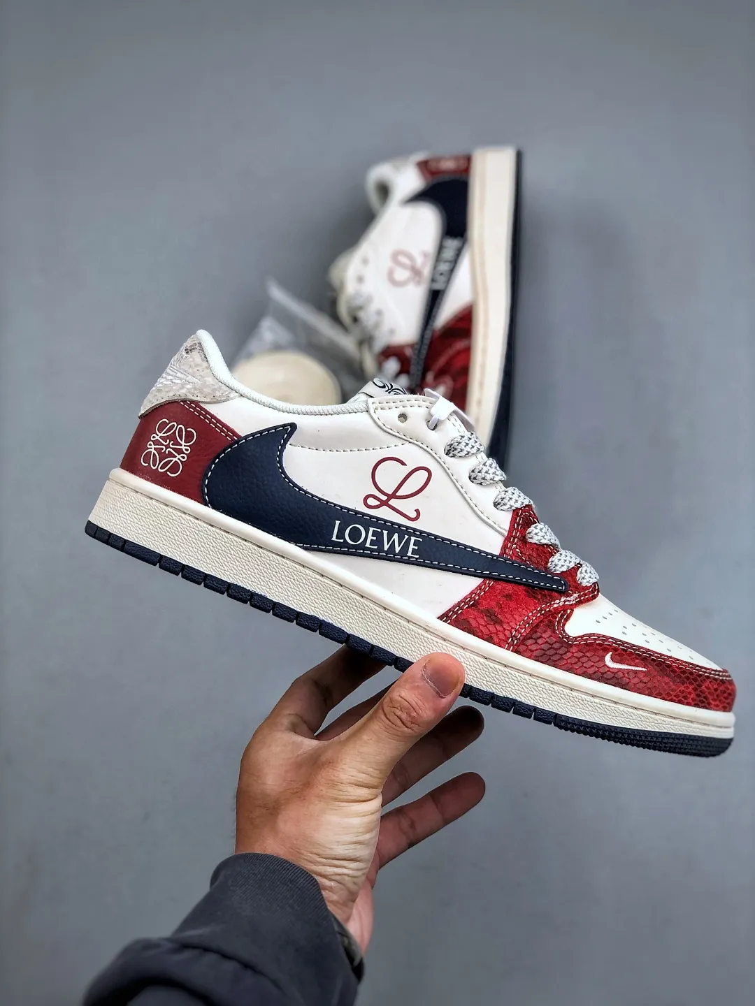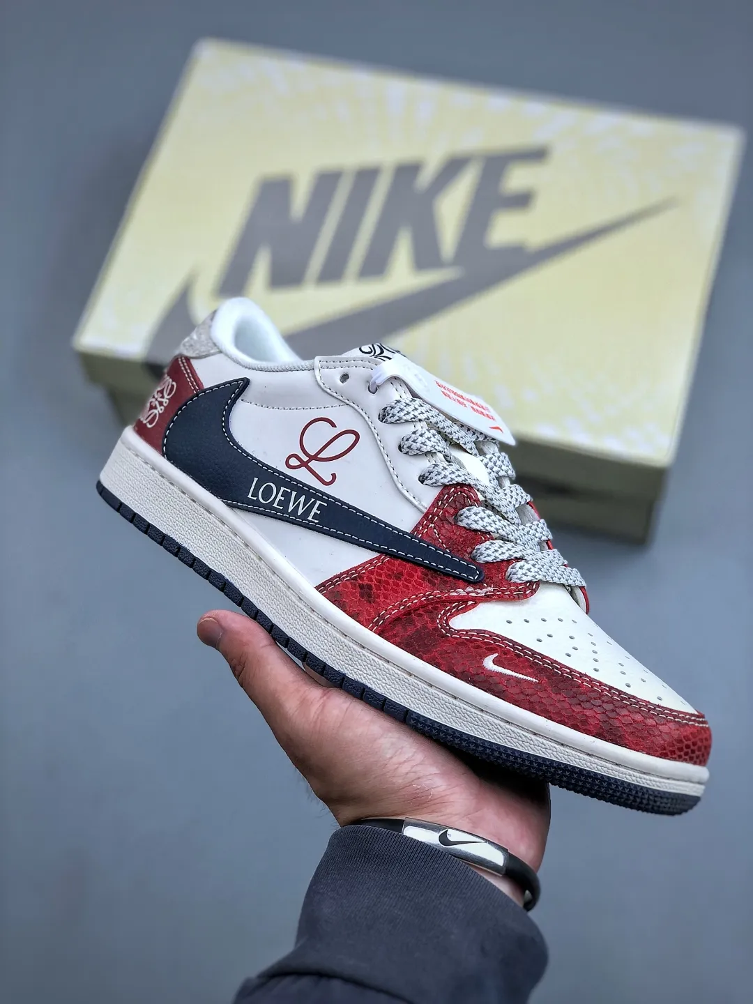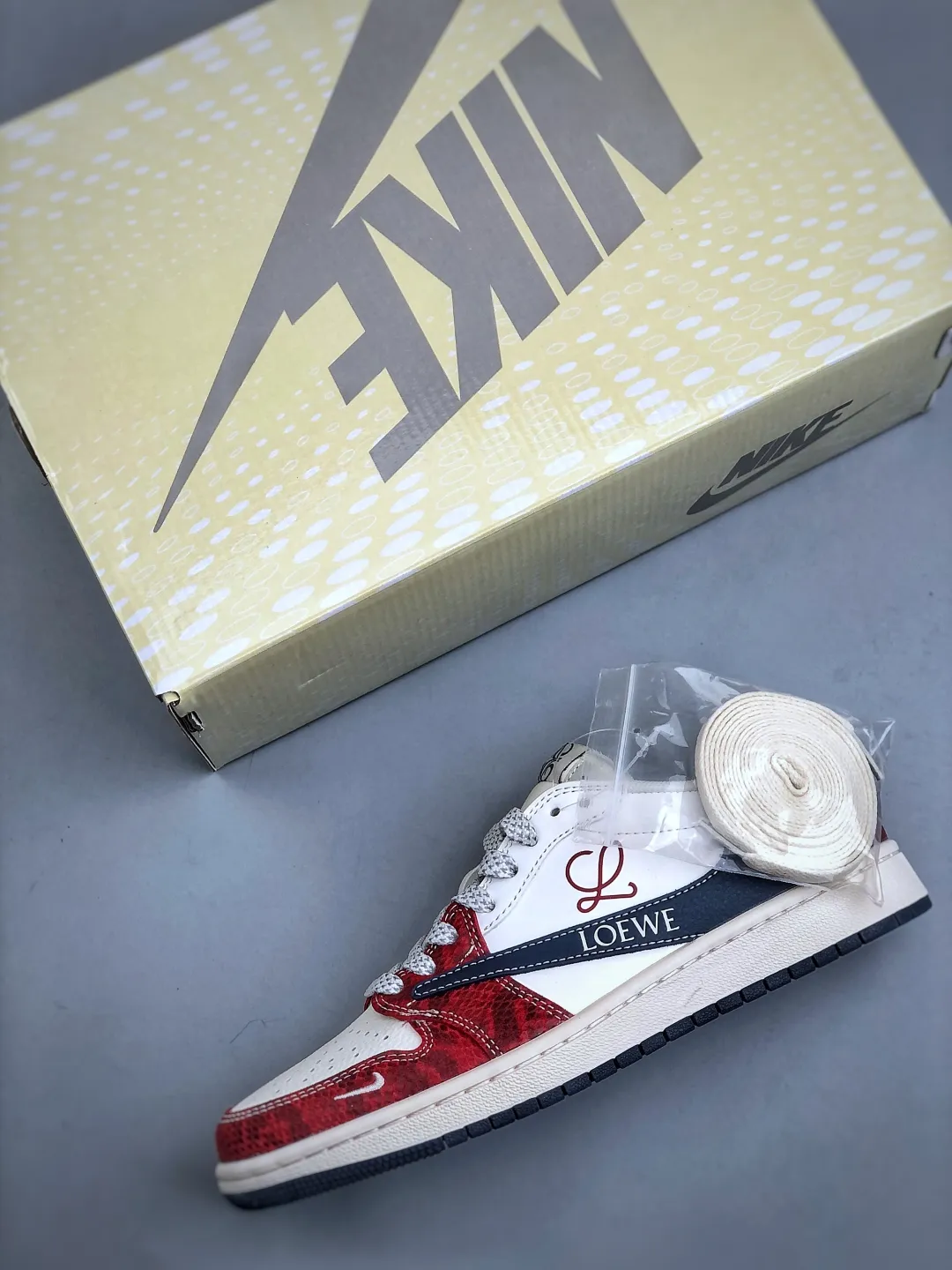 Loewe x TScott x AJ 1 Low White Red Navy