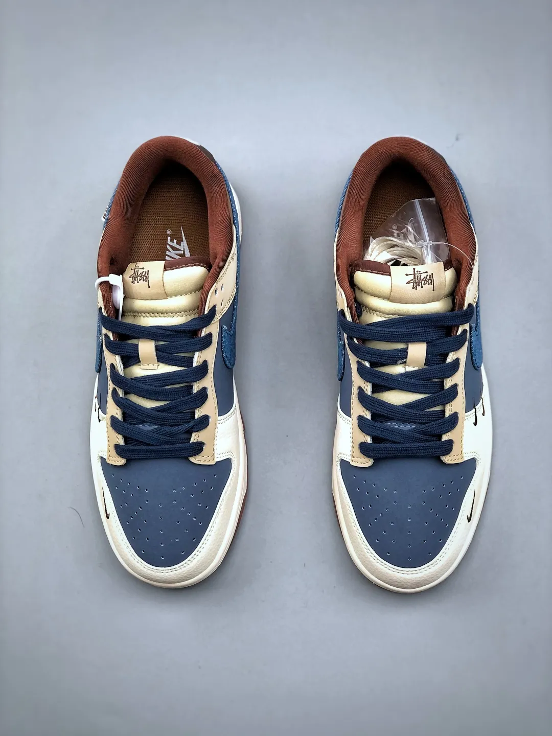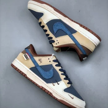 Stussy x SB Dunk Low White Brown Blue Denim